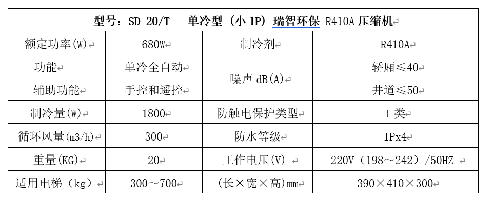 8、选择性强,针对大小不同的轿厢载重量与不同的轿厢环境,公司分别研制出 1 匹单冷型、1.5 匹单冷型、1 匹冷暖型、1.5 匹冷暖型空调,客户可根据自身的轿厢条件选择不同规格型号的电梯空调;